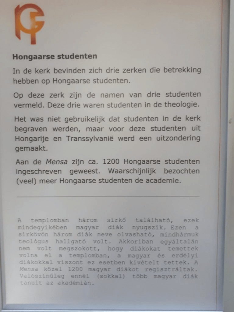 A harminc éves erdélyi teológus 1644. január 4-én halt meg. Ezt a Martinikerkben található sírkövet most már országosan sokan látták és levélben értesítettek minket a nyilvánossá tételről.