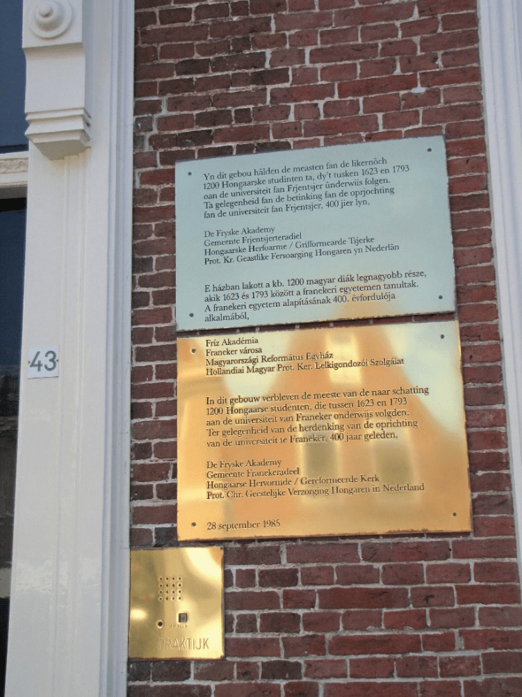 A magyar emlékeket felkeresőknek jelezzük, hogy Franeker városa, a Magyarországi Református Egyház, a Fríz Akadémia, az akkor még virágkorát élő Hollandiai Magyar Protestáns Keresztyén Lelkigondozó Szolgálat alapítványa, de főleg Tüski István hollandiai lelkész buzgalma nyomán az egykori franekéri magyar bursza falán fríz-holland és magyar nyelvű tábla hirdeti, hogy hosszú időn keresztül abban a házban laktak a peregrinusaink Franekerában, a Voorstraat 43. szám alatt.