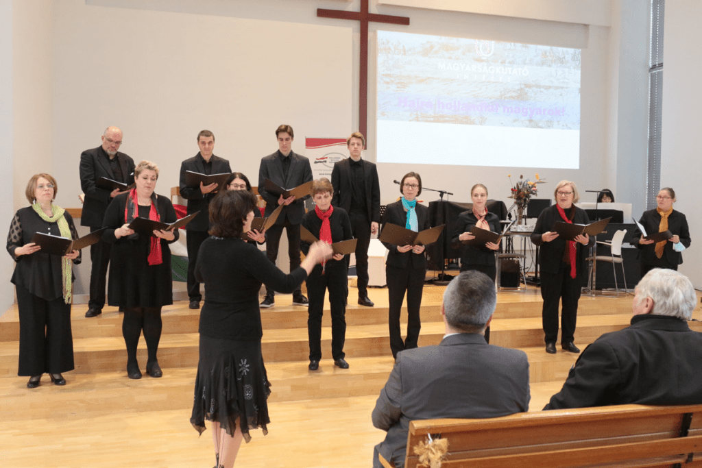 szívélyesen köszöntve minden jelenlevőt, külön üdvözölve az előadókat és a Hágai Magyar Énekkar vezetőjét.