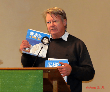 Op zondag 12 november was Gerrit van Dijk uit Kampen als gast in onze gemeente. Voordat de dienst begon presenteerde hij de Kijkbijbel van Kees de Kort (Így szól hozzám a Biblia). Gerrit werkt al jarenlang bij de stichting Hulp Oost Europa als lid van de commissie Lectuur, Vorming en Toerusting.